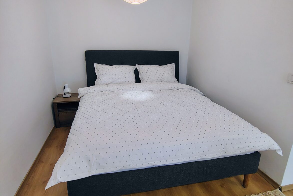 Апартаментът се намира на партерен етаж, оборудван е с двойно легло и разтегателен диван, кухня с всичко необходимо за готвене.