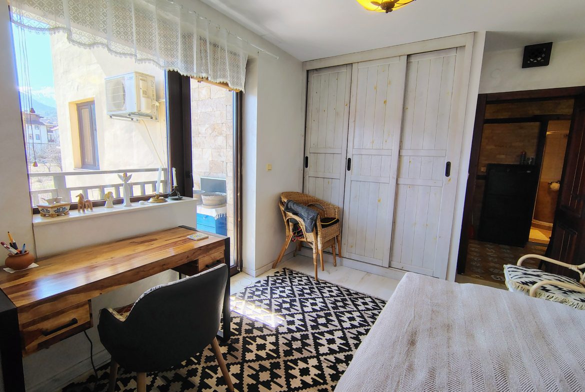 Апартаментът впечатлява със своята изцяло автентична атмосфера, създадена с внимание към всеки детайл и усещане за топлина и уют. Цялото обзавеждане е изработено от масивно дърво, което придава неподправен характер, устойчивост и стил извън времето.