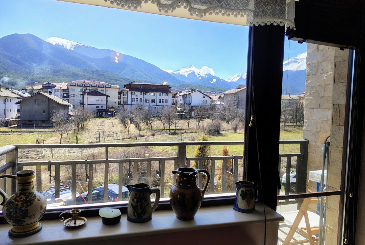 Апартаментът се състои от просторна дневна, 2 спални, баня с тоалетна, 2 тераси с гледка към планина, антре и складово помещение.