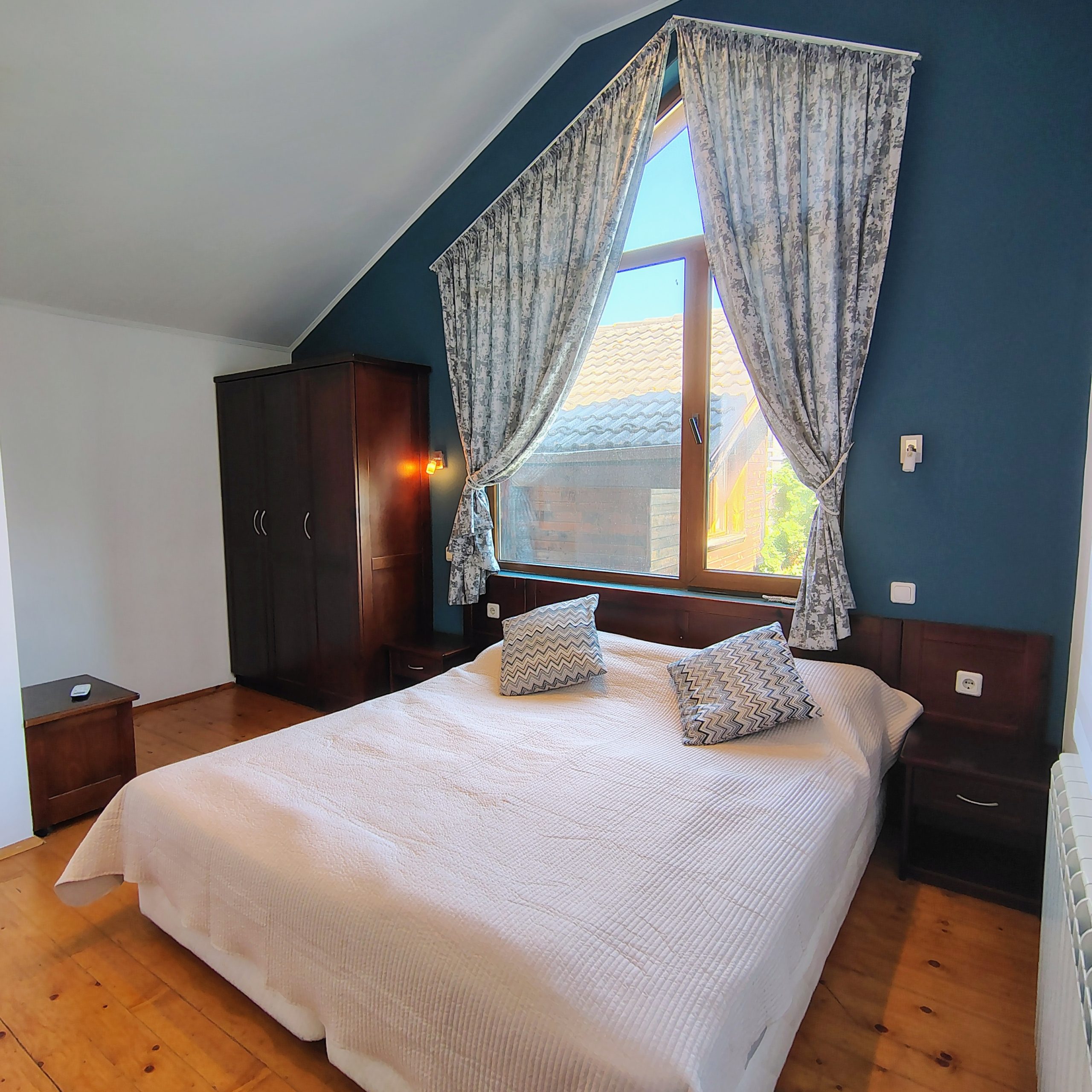 Отопление във всички стаи на климатици, камина и климатик в хола.