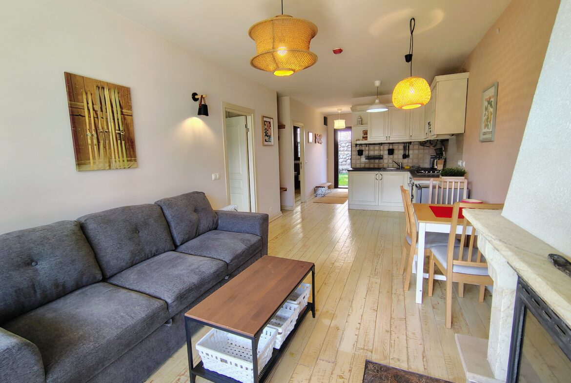 Апартаментът е направен с вкус и висококачествени материали и уютна атмосфера с камина. Обзаведен с вкус, с просторна и уютна кухня, оборудвана с цялата необходима техника. Идеален за семейство и постоянно живеене.
