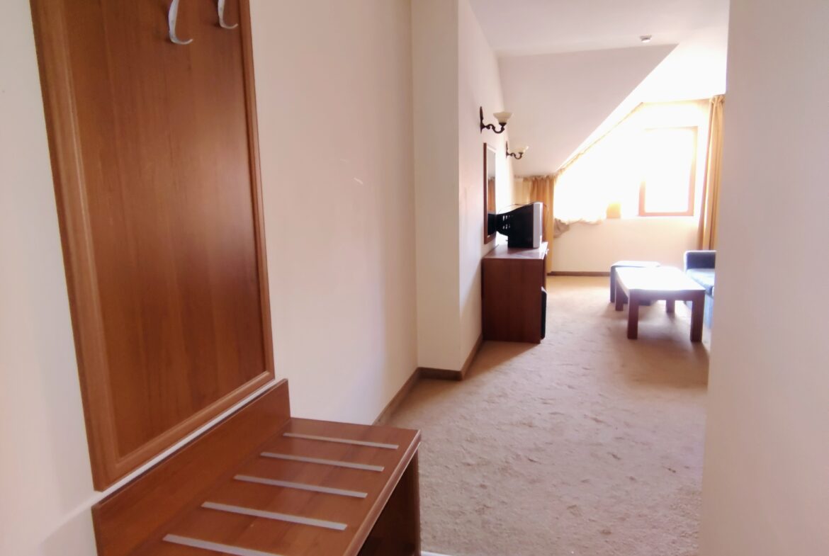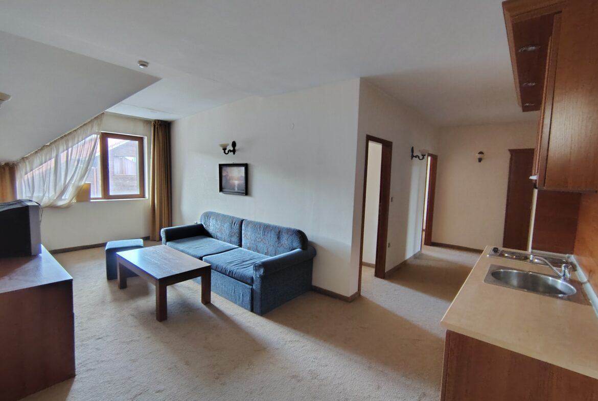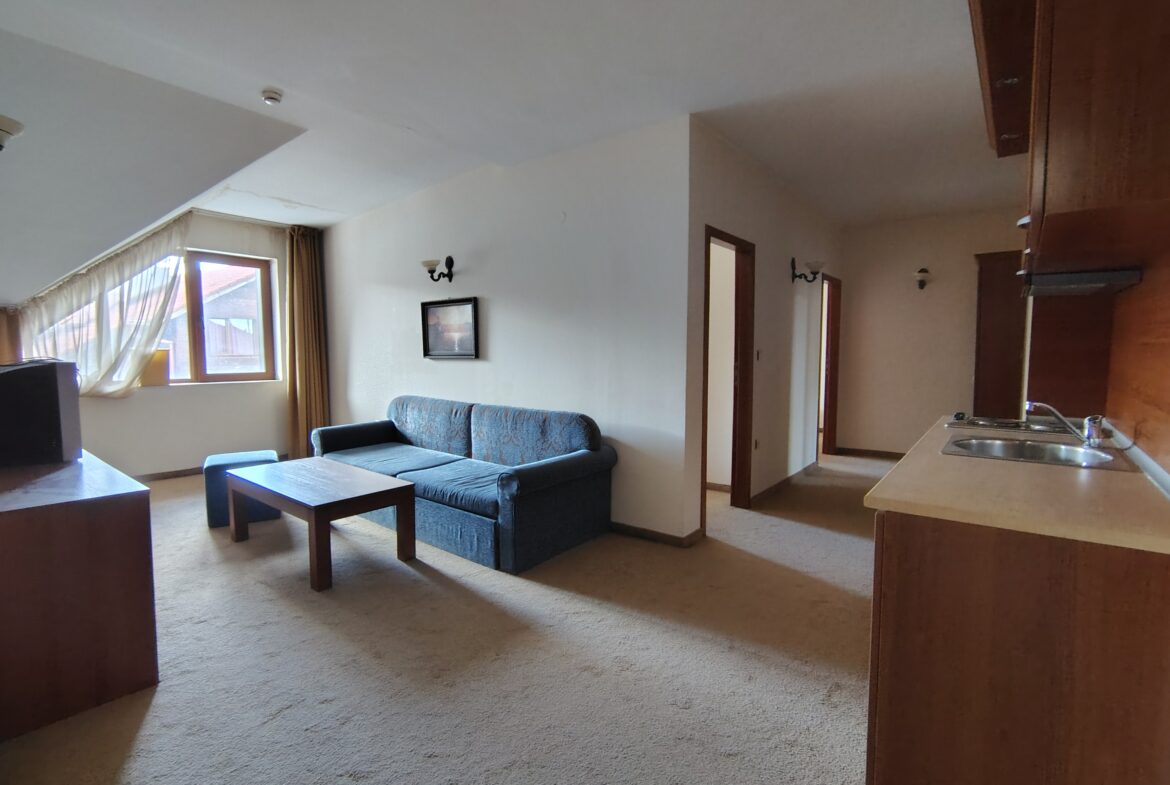 Тристаен апартамент в ТОП локация, само на 3 минути пеша до ски лифта. Състои се от антре, дневна с кухня, две спални, гардеробна, 2 бани, тераса с панорамна гледка към планина.