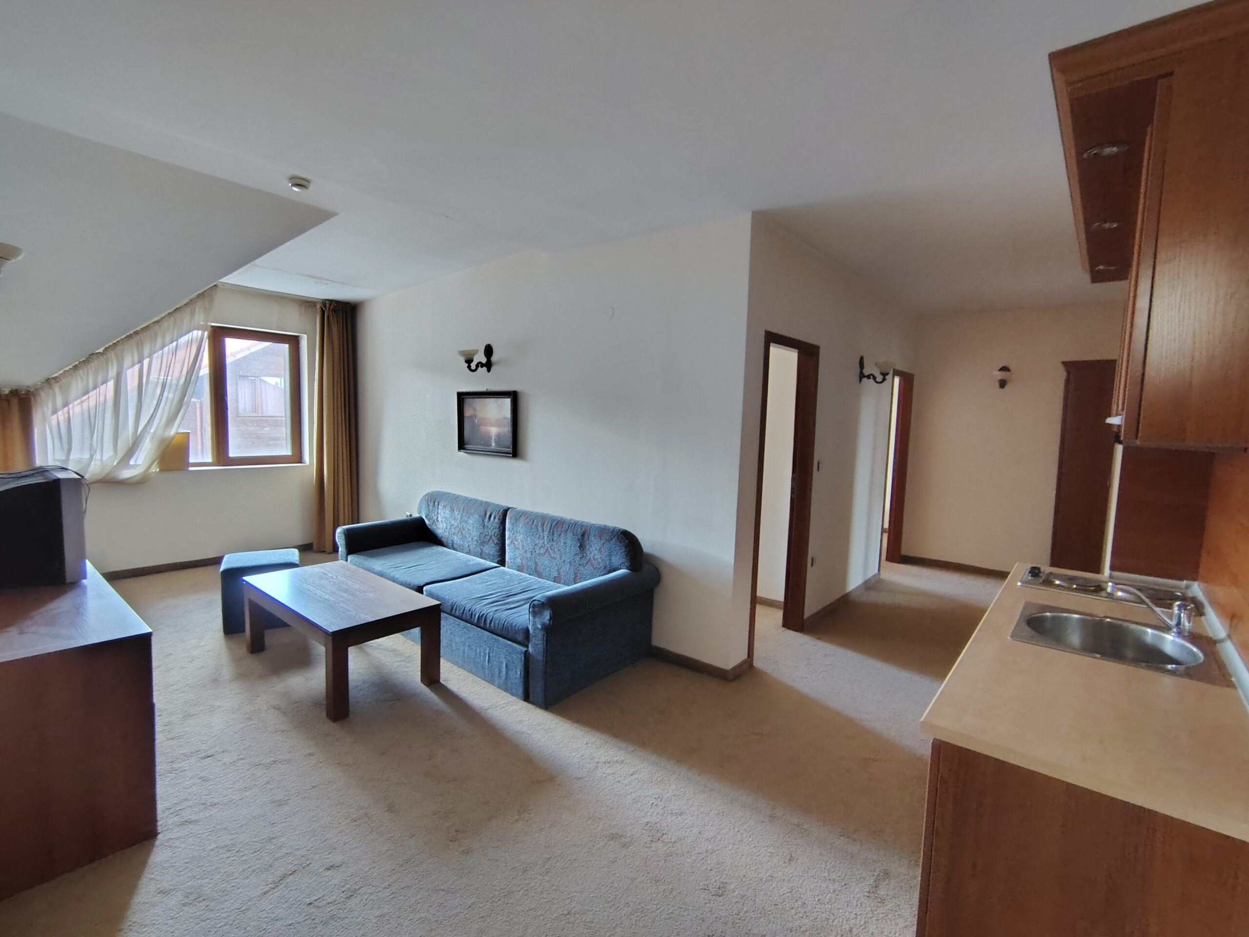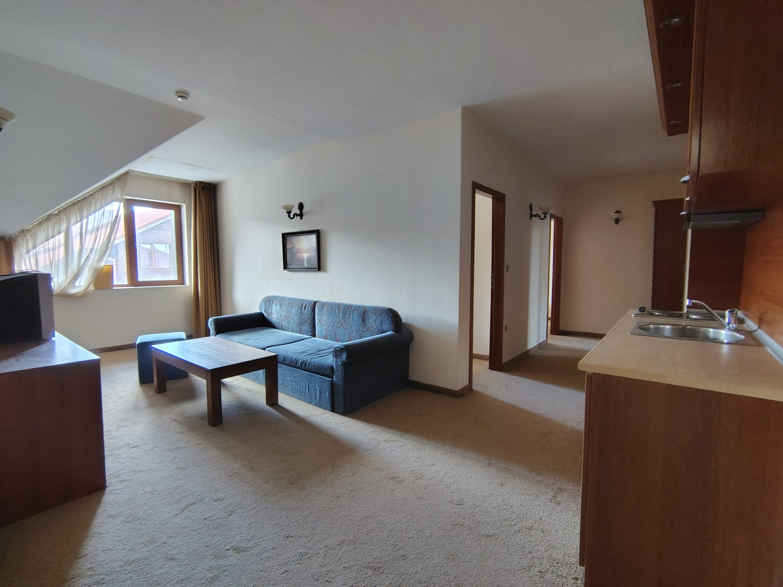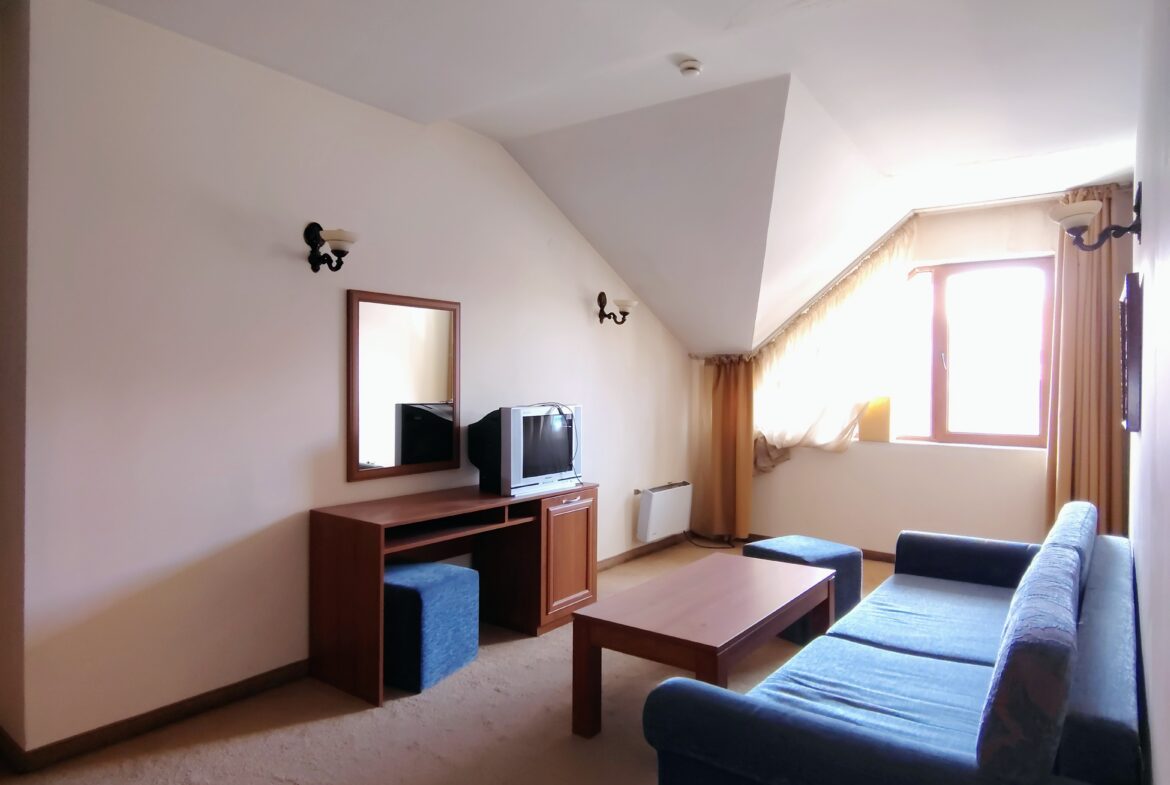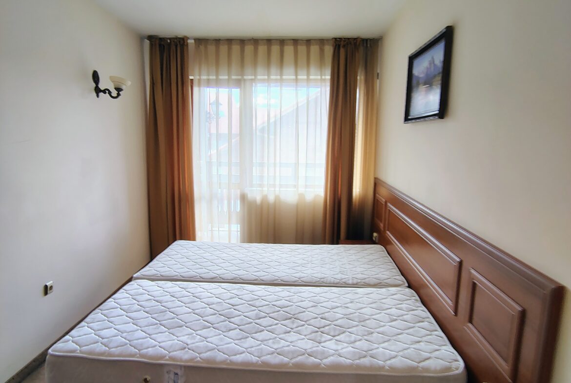 Идеален за семейство или за отдаване под наем. Площ 85 кв.м. Годишна такса поддръжка 7€/м² с включена вода. Изложение юго-западно.